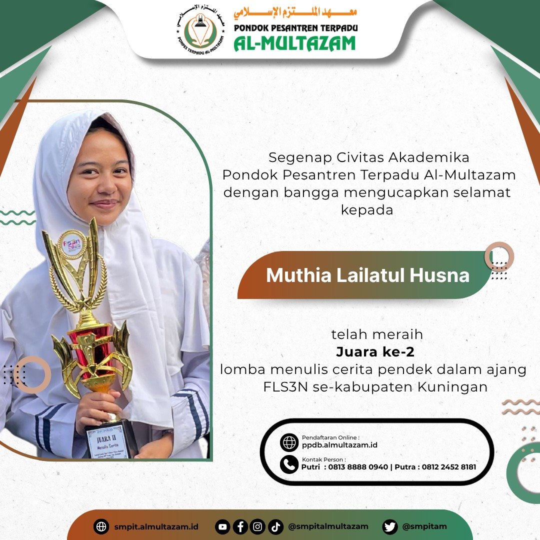 Prestasi Sekolah SMPIT AL-MULTAZAM March 3, 2026 0 Comments JUARA 2 LOMBA MENULIS CERITA PENDEK AJANG FLS3N